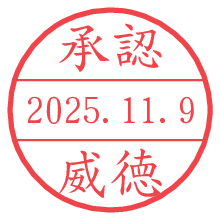オプションの「電子透かし」をチェックし[生成]すると、見た目には分からないように、UNIXタイムスタンプを識別情報としてPNG形式の日付印に埋め込みます。 日付スタンプメーカーの使い方「部署」「名前」は最大8文字まで入力が可能です。「スタンプの色」を選択し、[生成]ボタン押下で印影画像が更新され、背景を透明に設定したPNG形式とPDF形式の印影画像がリンクからダウンロードできます。 オプションの「電子透かし」は、その性格上日付印ととても相性の良い付加サービスです。 別ページの「タイムスタンプと電子透かし」でも詳しく解説しますが、このオプションを追加することで、日付印が生成された日時に確かにその印が存在していることが証明されます。 ![]() 威徳さんの電子印鑑が作れます。社内でのデータ書類閲覧確認用など、認印的な使い方のできる電子印鑑が作れます。 ![]() 古代文字で落款印が作れます。「落款スタンプメーカー」で作品を引き立たせる落款印が作れます。