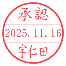 オプションの「電子透かし」をチェックし[生成]すると、見た目には分からないように、UNIXタイムスタンプを識別情報としてPNG形式の日付印に埋め込みます。 日付スタンプメーカーの使い方「部署」「名前」は最大8文字まで入力が可能です。「スタンプの色」を選択し、[生成]ボタン押下で印影画像が更新され、背景を透明に設定したPNG形式とPDF形式の印影画像がリンクからダウンロードできます。 オプションの「電子透かし」は、その性格上日付印ととても相性の良い付加サービスです。 別ページの「タイムスタンプと電子透かし」でも詳しく解説しますが、このオプションを追加することで、日付印が生成された日時に確かにその印が存在していることが証明されます。 ![]() 宇仁田さんの電子印鑑が作れます。社内でのデータ書類閲覧確認用など、認印的な使い方のできる電子印鑑が作れます。 ![]() 古代文字で落款印が作れます。「落款スタンプメーカー」で作品を引き立たせる落款印が作れます。
