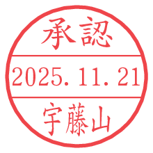 オプションの「電子透かし」をチェックし[生成]すると、見た目には分からないように、UNIXタイムスタンプを識別情報としてPNG形式の日付印に埋め込みます。 日付スタンプメーカーの使い方「部署」「名前」は最大8文字まで入力が可能です。「スタンプの色」を選択し、[生成]ボタン押下で印影画像が更新され、背景を透明に設定したPNG形式とPDF形式の印影画像がリンクからダウンロードできます。 オプションの「電子透かし」は、その性格上日付印ととても相性の良い付加サービスです。 別ページの「タイムスタンプと電子透かし」でも詳しく解説しますが、このオプションを追加することで、日付印が生成された日時に確かにその印が存在していることが証明されます。 ![]() 宇藤山さんの電子印鑑が作れます。社内でのデータ書類閲覧確認用など、認印的な使い方のできる電子印鑑が作れます。 ![]() 古代文字で落款印が作れます。「落款スタンプメーカー」で作品を引き立たせる落款印が作れます。