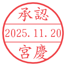 オプションの「電子透かし」をチェックし[生成]すると、見た目には分からないように、UNIXタイムスタンプを識別情報としてPNG形式の日付印に埋め込みます。 日付スタンプメーカーの使い方「部署」「名前」は最大8文字まで入力が可能です。「スタンプの色」を選択し、[生成]ボタン押下で印影画像が更新され、背景を透明に設定したPNG形式とPDF形式の印影画像がリンクからダウンロードできます。 オプションの「電子透かし」は、その性格上日付印ととても相性の良い付加サービスです。 別ページの「タイムスタンプと電子透かし」でも詳しく解説しますが、このオプションを追加することで、日付印が生成された日時に確かにその印が存在していることが証明されます。 ![]() 宮慶さんの電子印鑑が作れます。社内でのデータ書類閲覧確認用など、認印的な使い方のできる電子印鑑が作れます。 ![]() 古代文字で落款印が作れます。「落款スタンプメーカー」で作品を引き立たせる落款印が作れます。