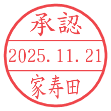 オプションの「電子透かし」をチェックし[生成]すると、見た目には分からないように、UNIXタイムスタンプを識別情報としてPNG形式の日付印に埋め込みます。 日付スタンプメーカーの使い方「部署」「名前」は最大8文字まで入力が可能です。「スタンプの色」を選択し、[生成]ボタン押下で印影画像が更新され、背景を透明に設定したPNG形式とPDF形式の印影画像がリンクからダウンロードできます。 オプションの「電子透かし」は、その性格上日付印ととても相性の良い付加サービスです。 別ページの「タイムスタンプと電子透かし」でも詳しく解説しますが、このオプションを追加することで、日付印が生成された日時に確かにその印が存在していることが証明されます。 ![]() 家寿田さんの電子印鑑が作れます。社内でのデータ書類閲覧確認用など、認印的な使い方のできる電子印鑑が作れます。 ![]() 古代文字で落款印が作れます。「落款スタンプメーカー」で作品を引き立たせる落款印が作れます。