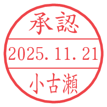 オプションの「電子透かし」をチェックし[生成]すると、見た目には分からないように、UNIXタイムスタンプを識別情報としてPNG形式の日付印に埋め込みます。 日付スタンプメーカーの使い方「部署」「名前」は最大8文字まで入力が可能です。「スタンプの色」を選択し、[生成]ボタン押下で印影画像が更新され、背景を透明に設定したPNG形式とPDF形式の印影画像がリンクからダウンロードできます。 オプションの「電子透かし」は、その性格上日付印ととても相性の良い付加サービスです。 別ページの「タイムスタンプと電子透かし」でも詳しく解説しますが、このオプションを追加することで、日付印が生成された日時に確かにその印が存在していることが証明されます。 ![]() 小古瀬さんの電子印鑑が作れます。社内でのデータ書類閲覧確認用など、認印的な使い方のできる電子印鑑が作れます。 ![]() 古代文字で落款印が作れます。「落款スタンプメーカー」で作品を引き立たせる落款印が作れます。
