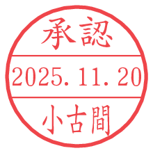 オプションの「電子透かし」をチェックし[生成]すると、見た目には分からないように、UNIXタイムスタンプを識別情報としてPNG形式の日付印に埋め込みます。 日付スタンプメーカーの使い方「部署」「名前」は最大8文字まで入力が可能です。「スタンプの色」を選択し、[生成]ボタン押下で印影画像が更新され、背景を透明に設定したPNG形式とPDF形式の印影画像がリンクからダウンロードできます。 オプションの「電子透かし」は、その性格上日付印ととても相性の良い付加サービスです。 別ページの「タイムスタンプと電子透かし」でも詳しく解説しますが、このオプションを追加することで、日付印が生成された日時に確かにその印が存在していることが証明されます。 ![]() 小古間さんの電子印鑑が作れます。社内でのデータ書類閲覧確認用など、認印的な使い方のできる電子印鑑が作れます。 ![]() 古代文字で落款印が作れます。「落款スタンプメーカー」で作品を引き立たせる落款印が作れます。