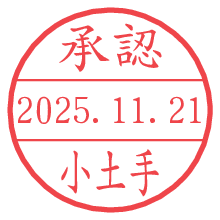 オプションの「電子透かし」をチェックし[生成]すると、見た目には分からないように、UNIXタイムスタンプを識別情報としてPNG形式の日付印に埋め込みます。 日付スタンプメーカーの使い方「部署」「名前」は最大8文字まで入力が可能です。「スタンプの色」を選択し、[生成]ボタン押下で印影画像が更新され、背景を透明に設定したPNG形式とPDF形式の印影画像がリンクからダウンロードできます。 オプションの「電子透かし」は、その性格上日付印ととても相性の良い付加サービスです。 別ページの「タイムスタンプと電子透かし」でも詳しく解説しますが、このオプションを追加することで、日付印が生成された日時に確かにその印が存在していることが証明されます。 ![]() 小土手さんの電子印鑑が作れます。社内でのデータ書類閲覧確認用など、認印的な使い方のできる電子印鑑が作れます。 ![]() 古代文字で落款印が作れます。「落款スタンプメーカー」で作品を引き立たせる落款印が作れます。