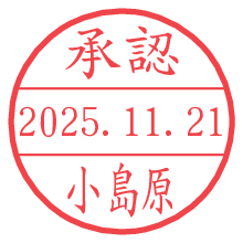 オプションの「電子透かし」をチェックし[生成]すると、見た目には分からないように、UNIXタイムスタンプを識別情報としてPNG形式の日付印に埋め込みます。 日付スタンプメーカーの使い方「部署」「名前」は最大8文字まで入力が可能です。「スタンプの色」を選択し、[生成]ボタン押下で印影画像が更新され、背景を透明に設定したPNG形式とPDF形式の印影画像がリンクからダウンロードできます。 オプションの「電子透かし」は、その性格上日付印ととても相性の良い付加サービスです。 別ページの「タイムスタンプと電子透かし」でも詳しく解説しますが、このオプションを追加することで、日付印が生成された日時に確かにその印が存在していることが証明されます。 ![]() 小島原さんの電子印鑑が作れます。社内でのデータ書類閲覧確認用など、認印的な使い方のできる電子印鑑が作れます。 ![]() 古代文字で落款印が作れます。「落款スタンプメーカー」で作品を引き立たせる落款印が作れます。