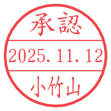 オプションの「電子透かし」をチェックし[生成]すると、見た目には分からないように、UNIXタイムスタンプを識別情報としてPNG形式の日付印に埋め込みます。 日付スタンプメーカーの使い方「部署」「名前」は最大8文字まで入力が可能です。「スタンプの色」を選択し、[生成]ボタン押下で印影画像が更新され、背景を透明に設定したPNG形式とPDF形式の印影画像がリンクからダウンロードできます。 オプションの「電子透かし」は、その性格上日付印ととても相性の良い付加サービスです。 別ページの「タイムスタンプと電子透かし」でも詳しく解説しますが、このオプションを追加することで、日付印が生成された日時に確かにその印が存在していることが証明されます。 ![]() 小竹山さんの電子印鑑が作れます。社内でのデータ書類閲覧確認用など、認印的な使い方のできる電子印鑑が作れます。 ![]() 古代文字で落款印が作れます。「落款スタンプメーカー」で作品を引き立たせる落款印が作れます。