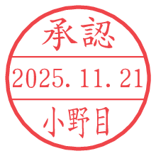 オプションの「電子透かし」をチェックし[生成]すると、見た目には分からないように、UNIXタイムスタンプを識別情報としてPNG形式の日付印に埋め込みます。 日付スタンプメーカーの使い方「部署」「名前」は最大8文字まで入力が可能です。「スタンプの色」を選択し、[生成]ボタン押下で印影画像が更新され、背景を透明に設定したPNG形式とPDF形式の印影画像がリンクからダウンロードできます。 オプションの「電子透かし」は、その性格上日付印ととても相性の良い付加サービスです。 別ページの「タイムスタンプと電子透かし」でも詳しく解説しますが、このオプションを追加することで、日付印が生成された日時に確かにその印が存在していることが証明されます。 ![]() 小野目さんの電子印鑑が作れます。社内でのデータ書類閲覧確認用など、認印的な使い方のできる電子印鑑が作れます。 ![]() 古代文字で落款印が作れます。「落款スタンプメーカー」で作品を引き立たせる落款印が作れます。