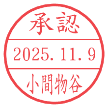 オプションの「電子透かし」をチェックし[生成]すると、見た目には分からないように、UNIXタイムスタンプを識別情報としてPNG形式の日付印に埋め込みます。 日付スタンプメーカーの使い方「部署」「名前」は最大8文字まで入力が可能です。「スタンプの色」を選択し、[生成]ボタン押下で印影画像が更新され、背景を透明に設定したPNG形式とPDF形式の印影画像がリンクからダウンロードできます。 オプションの「電子透かし」は、その性格上日付印ととても相性の良い付加サービスです。 別ページの「タイムスタンプと電子透かし」でも詳しく解説しますが、このオプションを追加することで、日付印が生成された日時に確かにその印が存在していることが証明されます。 ![]() 小間物谷さんの電子印鑑が作れます。社内でのデータ書類閲覧確認用など、認印的な使い方のできる電子印鑑が作れます。 ![]() 古代文字で落款印が作れます。「落款スタンプメーカー」で作品を引き立たせる落款印が作れます。