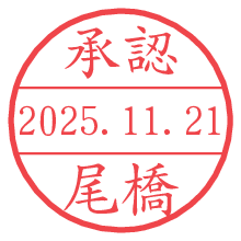 オプションの「電子透かし」をチェックし[生成]すると、見た目には分からないように、UNIXタイムスタンプを識別情報としてPNG形式の日付印に埋め込みます。 日付スタンプメーカーの使い方「部署」「名前」は最大8文字まで入力が可能です。「スタンプの色」を選択し、[生成]ボタン押下で印影画像が更新され、背景を透明に設定したPNG形式とPDF形式の印影画像がリンクからダウンロードできます。 オプションの「電子透かし」は、その性格上日付印ととても相性の良い付加サービスです。 別ページの「タイムスタンプと電子透かし」でも詳しく解説しますが、このオプションを追加することで、日付印が生成された日時に確かにその印が存在していることが証明されます。 ![]() 尾橋さんの電子印鑑が作れます。社内でのデータ書類閲覧確認用など、認印的な使い方のできる電子印鑑が作れます。 ![]() 古代文字で落款印が作れます。「落款スタンプメーカー」で作品を引き立たせる落款印が作れます。