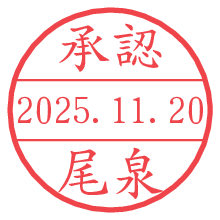 オプションの「電子透かし」をチェックし[生成]すると、見た目には分からないように、UNIXタイムスタンプを識別情報としてPNG形式の日付印に埋め込みます。 日付スタンプメーカーの使い方「部署」「名前」は最大8文字まで入力が可能です。「スタンプの色」を選択し、[生成]ボタン押下で印影画像が更新され、背景を透明に設定したPNG形式とPDF形式の印影画像がリンクからダウンロードできます。 オプションの「電子透かし」は、その性格上日付印ととても相性の良い付加サービスです。 別ページの「タイムスタンプと電子透かし」でも詳しく解説しますが、このオプションを追加することで、日付印が生成された日時に確かにその印が存在していることが証明されます。 ![]() 尾泉さんの電子印鑑が作れます。社内でのデータ書類閲覧確認用など、認印的な使い方のできる電子印鑑が作れます。 ![]() 古代文字で落款印が作れます。「落款スタンプメーカー」で作品を引き立たせる落款印が作れます。