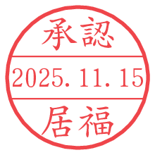 オプションの「電子透かし」をチェックし[生成]すると、見た目には分からないように、UNIXタイムスタンプを識別情報としてPNG形式の日付印に埋め込みます。 日付スタンプメーカーの使い方「部署」「名前」は最大8文字まで入力が可能です。「スタンプの色」を選択し、[生成]ボタン押下で印影画像が更新され、背景を透明に設定したPNG形式とPDF形式の印影画像がリンクからダウンロードできます。 オプションの「電子透かし」は、その性格上日付印ととても相性の良い付加サービスです。 別ページの「タイムスタンプと電子透かし」でも詳しく解説しますが、このオプションを追加することで、日付印が生成された日時に確かにその印が存在していることが証明されます。 ![]() 居福さんの電子印鑑が作れます。社内でのデータ書類閲覧確認用など、認印的な使い方のできる電子印鑑が作れます。 ![]() 古代文字で落款印が作れます。「落款スタンプメーカー」で作品を引き立たせる落款印が作れます。