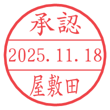 オプションの「電子透かし」をチェックし[生成]すると、見た目には分からないように、UNIXタイムスタンプを識別情報としてPNG形式の日付印に埋め込みます。 日付スタンプメーカーの使い方「部署」「名前」は最大8文字まで入力が可能です。「スタンプの色」を選択し、[生成]ボタン押下で印影画像が更新され、背景を透明に設定したPNG形式とPDF形式の印影画像がリンクからダウンロードできます。 オプションの「電子透かし」は、その性格上日付印ととても相性の良い付加サービスです。 別ページの「タイムスタンプと電子透かし」でも詳しく解説しますが、このオプションを追加することで、日付印が生成された日時に確かにその印が存在していることが証明されます。 ![]() 屋敷田さんの電子印鑑が作れます。社内でのデータ書類閲覧確認用など、認印的な使い方のできる電子印鑑が作れます。 ![]() 古代文字で落款印が作れます。「落款スタンプメーカー」で作品を引き立たせる落款印が作れます。