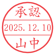 オプションの「電子透かし」をチェックし[生成]すると、見た目には分からないように、UNIXタイムスタンプを識別情報としてPNG形式の日付印に埋め込みます。 日付スタンプメーカーの使い方「部署」「名前」は最大8文字まで入力が可能です。「スタンプの色」を選択し、[生成]ボタン押下で印影画像が更新され、背景を透明に設定したPNG形式とPDF形式の印影画像がリンクからダウンロードできます。 オプションの「電子透かし」は、その性格上日付印ととても相性の良い付加サービスです。 別ページの「タイムスタンプと電子透かし」でも詳しく解説しますが、このオプションを追加することで、日付印が生成された日時に確かにその印が存在していることが証明されます。 ![]() 山中さんの電子印鑑が作れます。社内でのデータ書類閲覧確認用など、認印的な使い方のできる電子印鑑が作れます。 ![]() 古代文字で落款印が作れます。「落款スタンプメーカー」で作品を引き立たせる落款印が作れます。