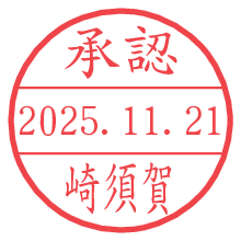 オプションの「電子透かし」をチェックし[生成]すると、見た目には分からないように、UNIXタイムスタンプを識別情報としてPNG形式の日付印に埋め込みます。 日付スタンプメーカーの使い方「部署」「名前」は最大8文字まで入力が可能です。「スタンプの色」を選択し、[生成]ボタン押下で印影画像が更新され、背景を透明に設定したPNG形式とPDF形式の印影画像がリンクからダウンロードできます。 オプションの「電子透かし」は、その性格上日付印ととても相性の良い付加サービスです。 別ページの「タイムスタンプと電子透かし」でも詳しく解説しますが、このオプションを追加することで、日付印が生成された日時に確かにその印が存在していることが証明されます。 ![]() 崎須賀さんの電子印鑑が作れます。社内でのデータ書類閲覧確認用など、認印的な使い方のできる電子印鑑が作れます。 ![]() 古代文字で落款印が作れます。「落款スタンプメーカー」で作品を引き立たせる落款印が作れます。