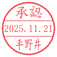 オプションの「電子透かし」をチェックし[生成]すると、見た目には分からないように、UNIXタイムスタンプを識別情報としてPNG形式の日付印に埋め込みます。 日付スタンプメーカーの使い方「部署」「名前」は最大8文字まで入力が可能です。「スタンプの色」を選択し、[生成]ボタン押下で印影画像が更新され、背景を透明に設定したPNG形式とPDF形式の印影画像がリンクからダウンロードできます。 オプションの「電子透かし」は、その性格上日付印ととても相性の良い付加サービスです。 別ページの「タイムスタンプと電子透かし」でも詳しく解説しますが、このオプションを追加することで、日付印が生成された日時に確かにその印が存在していることが証明されます。 ![]() 平野井さんの電子印鑑が作れます。社内でのデータ書類閲覧確認用など、認印的な使い方のできる電子印鑑が作れます。 ![]() 古代文字で落款印が作れます。「落款スタンプメーカー」で作品を引き立たせる落款印が作れます。