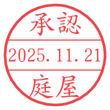 オプションの「電子透かし」をチェックし[生成]すると、見た目には分からないように、UNIXタイムスタンプを識別情報としてPNG形式の日付印に埋め込みます。 日付スタンプメーカーの使い方「部署」「名前」は最大8文字まで入力が可能です。「スタンプの色」を選択し、[生成]ボタン押下で印影画像が更新され、背景を透明に設定したPNG形式とPDF形式の印影画像がリンクからダウンロードできます。 オプションの「電子透かし」は、その性格上日付印ととても相性の良い付加サービスです。 別ページの「タイムスタンプと電子透かし」でも詳しく解説しますが、このオプションを追加することで、日付印が生成された日時に確かにその印が存在していることが証明されます。 ![]() 庭屋さんの電子印鑑が作れます。社内でのデータ書類閲覧確認用など、認印的な使い方のできる電子印鑑が作れます。 ![]() 古代文字で落款印が作れます。「落款スタンプメーカー」で作品を引き立たせる落款印が作れます。