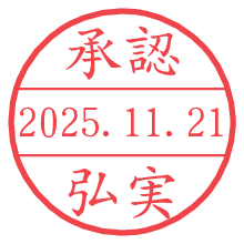オプションの「電子透かし」をチェックし[生成]すると、見た目には分からないように、UNIXタイムスタンプを識別情報としてPNG形式の日付印に埋め込みます。 日付スタンプメーカーの使い方「部署」「名前」は最大8文字まで入力が可能です。「スタンプの色」を選択し、[生成]ボタン押下で印影画像が更新され、背景を透明に設定したPNG形式とPDF形式の印影画像がリンクからダウンロードできます。 オプションの「電子透かし」は、その性格上日付印ととても相性の良い付加サービスです。 別ページの「タイムスタンプと電子透かし」でも詳しく解説しますが、このオプションを追加することで、日付印が生成された日時に確かにその印が存在していることが証明されます。 ![]() 弘実さんの電子印鑑が作れます。社内でのデータ書類閲覧確認用など、認印的な使い方のできる電子印鑑が作れます。 ![]() 古代文字で落款印が作れます。「落款スタンプメーカー」で作品を引き立たせる落款印が作れます。