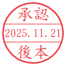 オプションの「電子透かし」をチェックし[生成]すると、見た目には分からないように、UNIXタイムスタンプを識別情報としてPNG形式の日付印に埋め込みます。 日付スタンプメーカーの使い方「部署」「名前」は最大8文字まで入力が可能です。「スタンプの色」を選択し、[生成]ボタン押下で印影画像が更新され、背景を透明に設定したPNG形式とPDF形式の印影画像がリンクからダウンロードできます。 オプションの「電子透かし」は、その性格上日付印ととても相性の良い付加サービスです。 別ページの「タイムスタンプと電子透かし」でも詳しく解説しますが、このオプションを追加することで、日付印が生成された日時に確かにその印が存在していることが証明されます。 ![]() 後本さんの電子印鑑が作れます。社内でのデータ書類閲覧確認用など、認印的な使い方のできる電子印鑑が作れます。 ![]() 古代文字で落款印が作れます。「落款スタンプメーカー」で作品を引き立たせる落款印が作れます。