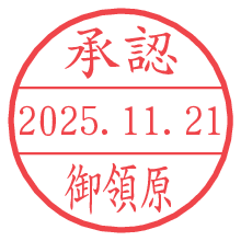 オプションの「電子透かし」をチェックし[生成]すると、見た目には分からないように、UNIXタイムスタンプを識別情報としてPNG形式の日付印に埋め込みます。 日付スタンプメーカーの使い方「部署」「名前」は最大8文字まで入力が可能です。「スタンプの色」を選択し、[生成]ボタン押下で印影画像が更新され、背景を透明に設定したPNG形式とPDF形式の印影画像がリンクからダウンロードできます。 オプションの「電子透かし」は、その性格上日付印ととても相性の良い付加サービスです。 別ページの「タイムスタンプと電子透かし」でも詳しく解説しますが、このオプションを追加することで、日付印が生成された日時に確かにその印が存在していることが証明されます。 ![]() 御領原さんの電子印鑑が作れます。社内でのデータ書類閲覧確認用など、認印的な使い方のできる電子印鑑が作れます。 ![]() 古代文字で落款印が作れます。「落款スタンプメーカー」で作品を引き立たせる落款印が作れます。
