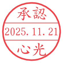 オプションの「電子透かし」をチェックし[生成]すると、見た目には分からないように、UNIXタイムスタンプを識別情報としてPNG形式の日付印に埋め込みます。 日付スタンプメーカーの使い方「部署」「名前」は最大8文字まで入力が可能です。「スタンプの色」を選択し、[生成]ボタン押下で印影画像が更新され、背景を透明に設定したPNG形式とPDF形式の印影画像がリンクからダウンロードできます。 オプションの「電子透かし」は、その性格上日付印ととても相性の良い付加サービスです。 別ページの「タイムスタンプと電子透かし」でも詳しく解説しますが、このオプションを追加することで、日付印が生成された日時に確かにその印が存在していることが証明されます。 ![]() 心光さんの電子印鑑が作れます。社内でのデータ書類閲覧確認用など、認印的な使い方のできる電子印鑑が作れます。 ![]() 古代文字で落款印が作れます。「落款スタンプメーカー」で作品を引き立たせる落款印が作れます。