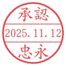 オプションの「電子透かし」をチェックし[生成]すると、見た目には分からないように、UNIXタイムスタンプを識別情報としてPNG形式の日付印に埋め込みます。 日付スタンプメーカーの使い方「部署」「名前」は最大8文字まで入力が可能です。「スタンプの色」を選択し、[生成]ボタン押下で印影画像が更新され、背景を透明に設定したPNG形式とPDF形式の印影画像がリンクからダウンロードできます。 オプションの「電子透かし」は、その性格上日付印ととても相性の良い付加サービスです。 別ページの「タイムスタンプと電子透かし」でも詳しく解説しますが、このオプションを追加することで、日付印が生成された日時に確かにその印が存在していることが証明されます。 ![]() 忠永さんの電子印鑑が作れます。社内でのデータ書類閲覧確認用など、認印的な使い方のできる電子印鑑が作れます。 ![]() 古代文字で落款印が作れます。「落款スタンプメーカー」で作品を引き立たせる落款印が作れます。