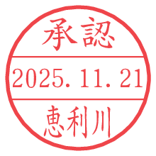 オプションの「電子透かし」をチェックし[生成]すると、見た目には分からないように、UNIXタイムスタンプを識別情報としてPNG形式の日付印に埋め込みます。 日付スタンプメーカーの使い方「部署」「名前」は最大8文字まで入力が可能です。「スタンプの色」を選択し、[生成]ボタン押下で印影画像が更新され、背景を透明に設定したPNG形式とPDF形式の印影画像がリンクからダウンロードできます。 オプションの「電子透かし」は、その性格上日付印ととても相性の良い付加サービスです。 別ページの「タイムスタンプと電子透かし」でも詳しく解説しますが、このオプションを追加することで、日付印が生成された日時に確かにその印が存在していることが証明されます。 ![]() 恵利川さんの電子印鑑が作れます。社内でのデータ書類閲覧確認用など、認印的な使い方のできる電子印鑑が作れます。 ![]() 古代文字で落款印が作れます。「落款スタンプメーカー」で作品を引き立たせる落款印が作れます。
