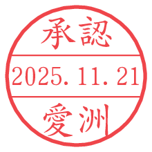 オプションの「電子透かし」をチェックし[生成]すると、見た目には分からないように、UNIXタイムスタンプを識別情報としてPNG形式の日付印に埋め込みます。 日付スタンプメーカーの使い方「部署」「名前」は最大8文字まで入力が可能です。「スタンプの色」を選択し、[生成]ボタン押下で印影画像が更新され、背景を透明に設定したPNG形式とPDF形式の印影画像がリンクからダウンロードできます。 オプションの「電子透かし」は、その性格上日付印ととても相性の良い付加サービスです。 別ページの「タイムスタンプと電子透かし」でも詳しく解説しますが、このオプションを追加することで、日付印が生成された日時に確かにその印が存在していることが証明されます。 ![]() 愛洲さんの電子印鑑が作れます。社内でのデータ書類閲覧確認用など、認印的な使い方のできる電子印鑑が作れます。 ![]() 古代文字で落款印が作れます。「落款スタンプメーカー」で作品を引き立たせる落款印が作れます。