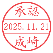 オプションの「電子透かし」をチェックし[生成]すると、見た目には分からないように、UNIXタイムスタンプを識別情報としてPNG形式の日付印に埋め込みます。 日付スタンプメーカーの使い方「部署」「名前」は最大8文字まで入力が可能です。「スタンプの色」を選択し、[生成]ボタン押下で印影画像が更新され、背景を透明に設定したPNG形式とPDF形式の印影画像がリンクからダウンロードできます。 オプションの「電子透かし」は、その性格上日付印ととても相性の良い付加サービスです。 別ページの「タイムスタンプと電子透かし」でも詳しく解説しますが、このオプションを追加することで、日付印が生成された日時に確かにその印が存在していることが証明されます。 ![]() 成崎さんの電子印鑑が作れます。社内でのデータ書類閲覧確認用など、認印的な使い方のできる電子印鑑が作れます。 ![]() 古代文字で落款印が作れます。「落款スタンプメーカー」で作品を引き立たせる落款印が作れます。