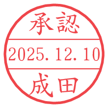 オプションの「電子透かし」をチェックし[生成]すると、見た目には分からないように、UNIXタイムスタンプを識別情報としてPNG形式の日付印に埋め込みます。 日付スタンプメーカーの使い方「部署」「名前」は最大8文字まで入力が可能です。「スタンプの色」を選択し、[生成]ボタン押下で印影画像が更新され、背景を透明に設定したPNG形式とPDF形式の印影画像がリンクからダウンロードできます。 オプションの「電子透かし」は、その性格上日付印ととても相性の良い付加サービスです。 別ページの「タイムスタンプと電子透かし」でも詳しく解説しますが、このオプションを追加することで、日付印が生成された日時に確かにその印が存在していることが証明されます。 ![]() 成田さんの電子印鑑が作れます。社内でのデータ書類閲覧確認用など、認印的な使い方のできる電子印鑑が作れます。 ![]() 古代文字で落款印が作れます。「落款スタンプメーカー」で作品を引き立たせる落款印が作れます。