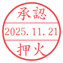 オプションの「電子透かし」をチェックし[生成]すると、見た目には分からないように、UNIXタイムスタンプを識別情報としてPNG形式の日付印に埋め込みます。 日付スタンプメーカーの使い方「部署」「名前」は最大8文字まで入力が可能です。「スタンプの色」を選択し、[生成]ボタン押下で印影画像が更新され、背景を透明に設定したPNG形式とPDF形式の印影画像がリンクからダウンロードできます。 オプションの「電子透かし」は、その性格上日付印ととても相性の良い付加サービスです。 別ページの「タイムスタンプと電子透かし」でも詳しく解説しますが、このオプションを追加することで、日付印が生成された日時に確かにその印が存在していることが証明されます。 ![]() 押火さんの電子印鑑が作れます。社内でのデータ書類閲覧確認用など、認印的な使い方のできる電子印鑑が作れます。 ![]() 古代文字で落款印が作れます。「落款スタンプメーカー」で作品を引き立たせる落款印が作れます。