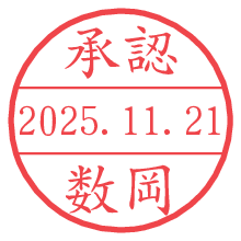 オプションの「電子透かし」をチェックし[生成]すると、見た目には分からないように、UNIXタイムスタンプを識別情報としてPNG形式の日付印に埋め込みます。 日付スタンプメーカーの使い方「部署」「名前」は最大8文字まで入力が可能です。「スタンプの色」を選択し、[生成]ボタン押下で印影画像が更新され、背景を透明に設定したPNG形式とPDF形式の印影画像がリンクからダウンロードできます。 オプションの「電子透かし」は、その性格上日付印ととても相性の良い付加サービスです。 別ページの「タイムスタンプと電子透かし」でも詳しく解説しますが、このオプションを追加することで、日付印が生成された日時に確かにその印が存在していることが証明されます。 ![]() 数岡さんの電子印鑑が作れます。社内でのデータ書類閲覧確認用など、認印的な使い方のできる電子印鑑が作れます。 ![]() 古代文字で落款印が作れます。「落款スタンプメーカー」で作品を引き立たせる落款印が作れます。