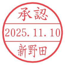 オプションの「電子透かし」をチェックし[生成]すると、見た目には分からないように、UNIXタイムスタンプを識別情報としてPNG形式の日付印に埋め込みます。 日付スタンプメーカーの使い方「部署」「名前」は最大8文字まで入力が可能です。「スタンプの色」を選択し、[生成]ボタン押下で印影画像が更新され、背景を透明に設定したPNG形式とPDF形式の印影画像がリンクからダウンロードできます。 オプションの「電子透かし」は、その性格上日付印ととても相性の良い付加サービスです。 別ページの「タイムスタンプと電子透かし」でも詳しく解説しますが、このオプションを追加することで、日付印が生成された日時に確かにその印が存在していることが証明されます。 ![]() 新野田さんの電子印鑑が作れます。社内でのデータ書類閲覧確認用など、認印的な使い方のできる電子印鑑が作れます。 ![]() 古代文字で落款印が作れます。「落款スタンプメーカー」で作品を引き立たせる落款印が作れます。