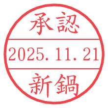 オプションの「電子透かし」をチェックし[生成]すると、見た目には分からないように、UNIXタイムスタンプを識別情報としてPNG形式の日付印に埋め込みます。 日付スタンプメーカーの使い方「部署」「名前」は最大8文字まで入力が可能です。「スタンプの色」を選択し、[生成]ボタン押下で印影画像が更新され、背景を透明に設定したPNG形式とPDF形式の印影画像がリンクからダウンロードできます。 オプションの「電子透かし」は、その性格上日付印ととても相性の良い付加サービスです。 別ページの「タイムスタンプと電子透かし」でも詳しく解説しますが、このオプションを追加することで、日付印が生成された日時に確かにその印が存在していることが証明されます。 ![]() 新鍋さんの電子印鑑が作れます。社内でのデータ書類閲覧確認用など、認印的な使い方のできる電子印鑑が作れます。 ![]() 古代文字で落款印が作れます。「落款スタンプメーカー」で作品を引き立たせる落款印が作れます。