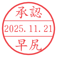 オプションの「電子透かし」をチェックし[生成]すると、見た目には分からないように、UNIXタイムスタンプを識別情報としてPNG形式の日付印に埋め込みます。 日付スタンプメーカーの使い方「部署」「名前」は最大8文字まで入力が可能です。「スタンプの色」を選択し、[生成]ボタン押下で印影画像が更新され、背景を透明に設定したPNG形式とPDF形式の印影画像がリンクからダウンロードできます。 オプションの「電子透かし」は、その性格上日付印ととても相性の良い付加サービスです。 別ページの「タイムスタンプと電子透かし」でも詳しく解説しますが、このオプションを追加することで、日付印が生成された日時に確かにその印が存在していることが証明されます。 ![]() 早尻さんの電子印鑑が作れます。社内でのデータ書類閲覧確認用など、認印的な使い方のできる電子印鑑が作れます。 ![]() 古代文字で落款印が作れます。「落款スタンプメーカー」で作品を引き立たせる落款印が作れます。