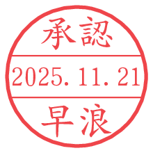 オプションの「電子透かし」をチェックし[生成]すると、見た目には分からないように、UNIXタイムスタンプを識別情報としてPNG形式の日付印に埋め込みます。 日付スタンプメーカーの使い方「部署」「名前」は最大8文字まで入力が可能です。「スタンプの色」を選択し、[生成]ボタン押下で印影画像が更新され、背景を透明に設定したPNG形式とPDF形式の印影画像がリンクからダウンロードできます。 オプションの「電子透かし」は、その性格上日付印ととても相性の良い付加サービスです。 別ページの「タイムスタンプと電子透かし」でも詳しく解説しますが、このオプションを追加することで、日付印が生成された日時に確かにその印が存在していることが証明されます。 ![]() 早浪さんの電子印鑑が作れます。社内でのデータ書類閲覧確認用など、認印的な使い方のできる電子印鑑が作れます。 ![]() 古代文字で落款印が作れます。「落款スタンプメーカー」で作品を引き立たせる落款印が作れます。