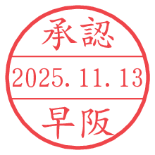 オプションの「電子透かし」をチェックし[生成]すると、見た目には分からないように、UNIXタイムスタンプを識別情報としてPNG形式の日付印に埋め込みます。 日付スタンプメーカーの使い方「部署」「名前」は最大8文字まで入力が可能です。「スタンプの色」を選択し、[生成]ボタン押下で印影画像が更新され、背景を透明に設定したPNG形式とPDF形式の印影画像がリンクからダウンロードできます。 オプションの「電子透かし」は、その性格上日付印ととても相性の良い付加サービスです。 別ページの「タイムスタンプと電子透かし」でも詳しく解説しますが、このオプションを追加することで、日付印が生成された日時に確かにその印が存在していることが証明されます。 ![]() 早阪さんの電子印鑑が作れます。社内でのデータ書類閲覧確認用など、認印的な使い方のできる電子印鑑が作れます。 ![]() 古代文字で落款印が作れます。「落款スタンプメーカー」で作品を引き立たせる落款印が作れます。