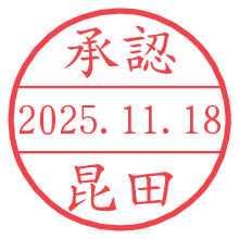 オプションの「電子透かし」をチェックし[生成]すると、見た目には分からないように、UNIXタイムスタンプを識別情報としてPNG形式の日付印に埋め込みます。 日付スタンプメーカーの使い方「部署」「名前」は最大8文字まで入力が可能です。「スタンプの色」を選択し、[生成]ボタン押下で印影画像が更新され、背景を透明に設定したPNG形式とPDF形式の印影画像がリンクからダウンロードできます。 オプションの「電子透かし」は、その性格上日付印ととても相性の良い付加サービスです。 別ページの「タイムスタンプと電子透かし」でも詳しく解説しますが、このオプションを追加することで、日付印が生成された日時に確かにその印が存在していることが証明されます。 ![]() 昆田さんの電子印鑑が作れます。社内でのデータ書類閲覧確認用など、認印的な使い方のできる電子印鑑が作れます。 ![]() 古代文字で落款印が作れます。「落款スタンプメーカー」で作品を引き立たせる落款印が作れます。