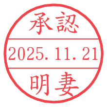 オプションの「電子透かし」をチェックし[生成]すると、見た目には分からないように、UNIXタイムスタンプを識別情報としてPNG形式の日付印に埋め込みます。 日付スタンプメーカーの使い方「部署」「名前」は最大8文字まで入力が可能です。「スタンプの色」を選択し、[生成]ボタン押下で印影画像が更新され、背景を透明に設定したPNG形式とPDF形式の印影画像がリンクからダウンロードできます。 オプションの「電子透かし」は、その性格上日付印ととても相性の良い付加サービスです。 別ページの「タイムスタンプと電子透かし」でも詳しく解説しますが、このオプションを追加することで、日付印が生成された日時に確かにその印が存在していることが証明されます。 ![]() 明妻さんの電子印鑑が作れます。社内でのデータ書類閲覧確認用など、認印的な使い方のできる電子印鑑が作れます。 ![]() 古代文字で落款印が作れます。「落款スタンプメーカー」で作品を引き立たせる落款印が作れます。