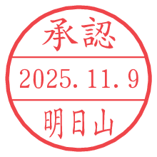 オプションの「電子透かし」をチェックし[生成]すると、見た目には分からないように、UNIXタイムスタンプを識別情報としてPNG形式の日付印に埋め込みます。 日付スタンプメーカーの使い方「部署」「名前」は最大8文字まで入力が可能です。「スタンプの色」を選択し、[生成]ボタン押下で印影画像が更新され、背景を透明に設定したPNG形式とPDF形式の印影画像がリンクからダウンロードできます。 オプションの「電子透かし」は、その性格上日付印ととても相性の良い付加サービスです。 別ページの「タイムスタンプと電子透かし」でも詳しく解説しますが、このオプションを追加することで、日付印が生成された日時に確かにその印が存在していることが証明されます。 ![]() 明日山さんの電子印鑑が作れます。社内でのデータ書類閲覧確認用など、認印的な使い方のできる電子印鑑が作れます。 ![]() 古代文字で落款印が作れます。「落款スタンプメーカー」で作品を引き立たせる落款印が作れます。