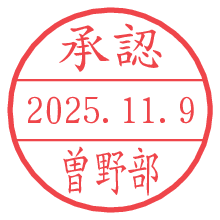 オプションの「電子透かし」をチェックし[生成]すると、見た目には分からないように、UNIXタイムスタンプを識別情報としてPNG形式の日付印に埋め込みます。 日付スタンプメーカーの使い方「部署」「名前」は最大8文字まで入力が可能です。「スタンプの色」を選択し、[生成]ボタン押下で印影画像が更新され、背景を透明に設定したPNG形式とPDF形式の印影画像がリンクからダウンロードできます。 オプションの「電子透かし」は、その性格上日付印ととても相性の良い付加サービスです。 別ページの「タイムスタンプと電子透かし」でも詳しく解説しますが、このオプションを追加することで、日付印が生成された日時に確かにその印が存在していることが証明されます。 ![]() 曽野部さんの電子印鑑が作れます。社内でのデータ書類閲覧確認用など、認印的な使い方のできる電子印鑑が作れます。 ![]() 古代文字で落款印が作れます。「落款スタンプメーカー」で作品を引き立たせる落款印が作れます。