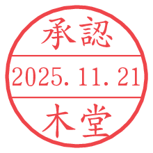 オプションの「電子透かし」をチェックし[生成]すると、見た目には分からないように、UNIXタイムスタンプを識別情報としてPNG形式の日付印に埋め込みます。 日付スタンプメーカーの使い方「部署」「名前」は最大8文字まで入力が可能です。「スタンプの色」を選択し、[生成]ボタン押下で印影画像が更新され、背景を透明に設定したPNG形式とPDF形式の印影画像がリンクからダウンロードできます。 オプションの「電子透かし」は、その性格上日付印ととても相性の良い付加サービスです。 別ページの「タイムスタンプと電子透かし」でも詳しく解説しますが、このオプションを追加することで、日付印が生成された日時に確かにその印が存在していることが証明されます。 ![]() 木堂さんの電子印鑑が作れます。社内でのデータ書類閲覧確認用など、認印的な使い方のできる電子印鑑が作れます。 ![]() 古代文字で落款印が作れます。「落款スタンプメーカー」で作品を引き立たせる落款印が作れます。