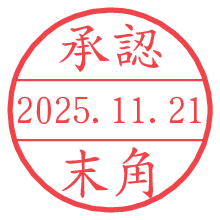オプションの「電子透かし」をチェックし[生成]すると、見た目には分からないように、UNIXタイムスタンプを識別情報としてPNG形式の日付印に埋め込みます。 日付スタンプメーカーの使い方「部署」「名前」は最大8文字まで入力が可能です。「スタンプの色」を選択し、[生成]ボタン押下で印影画像が更新され、背景を透明に設定したPNG形式とPDF形式の印影画像がリンクからダウンロードできます。 オプションの「電子透かし」は、その性格上日付印ととても相性の良い付加サービスです。 別ページの「タイムスタンプと電子透かし」でも詳しく解説しますが、このオプションを追加することで、日付印が生成された日時に確かにその印が存在していることが証明されます。 ![]() 末角さんの電子印鑑が作れます。社内でのデータ書類閲覧確認用など、認印的な使い方のできる電子印鑑が作れます。 ![]() 古代文字で落款印が作れます。「落款スタンプメーカー」で作品を引き立たせる落款印が作れます。