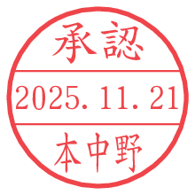オプションの「電子透かし」をチェックし[生成]すると、見た目には分からないように、UNIXタイムスタンプを識別情報としてPNG形式の日付印に埋め込みます。 日付スタンプメーカーの使い方「部署」「名前」は最大8文字まで入力が可能です。「スタンプの色」を選択し、[生成]ボタン押下で印影画像が更新され、背景を透明に設定したPNG形式とPDF形式の印影画像がリンクからダウンロードできます。 オプションの「電子透かし」は、その性格上日付印ととても相性の良い付加サービスです。 別ページの「タイムスタンプと電子透かし」でも詳しく解説しますが、このオプションを追加することで、日付印が生成された日時に確かにその印が存在していることが証明されます。 ![]() 本中野さんの電子印鑑が作れます。社内でのデータ書類閲覧確認用など、認印的な使い方のできる電子印鑑が作れます。 ![]() 古代文字で落款印が作れます。「落款スタンプメーカー」で作品を引き立たせる落款印が作れます。