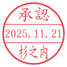 オプションの「電子透かし」をチェックし[生成]すると、見た目には分からないように、UNIXタイムスタンプを識別情報としてPNG形式の日付印に埋め込みます。 日付スタンプメーカーの使い方「部署」「名前」は最大8文字まで入力が可能です。「スタンプの色」を選択し、[生成]ボタン押下で印影画像が更新され、背景を透明に設定したPNG形式とPDF形式の印影画像がリンクからダウンロードできます。 オプションの「電子透かし」は、その性格上日付印ととても相性の良い付加サービスです。 別ページの「タイムスタンプと電子透かし」でも詳しく解説しますが、このオプションを追加することで、日付印が生成された日時に確かにその印が存在していることが証明されます。 ![]() 杉之内さんの電子印鑑が作れます。社内でのデータ書類閲覧確認用など、認印的な使い方のできる電子印鑑が作れます。 ![]() 古代文字で落款印が作れます。「落款スタンプメーカー」で作品を引き立たせる落款印が作れます。