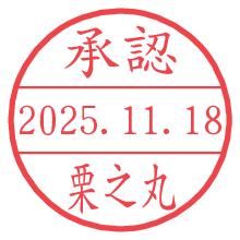 オプションの「電子透かし」をチェックし[生成]すると、見た目には分からないように、UNIXタイムスタンプを識別情報としてPNG形式の日付印に埋め込みます。 日付スタンプメーカーの使い方「部署」「名前」は最大8文字まで入力が可能です。「スタンプの色」を選択し、[生成]ボタン押下で印影画像が更新され、背景を透明に設定したPNG形式とPDF形式の印影画像がリンクからダウンロードできます。 オプションの「電子透かし」は、その性格上日付印ととても相性の良い付加サービスです。 別ページの「タイムスタンプと電子透かし」でも詳しく解説しますが、このオプションを追加することで、日付印が生成された日時に確かにその印が存在していることが証明されます。 ![]() 栗之丸さんの電子印鑑が作れます。社内でのデータ書類閲覧確認用など、認印的な使い方のできる電子印鑑が作れます。 ![]() 古代文字で落款印が作れます。「落款スタンプメーカー」で作品を引き立たせる落款印が作れます。