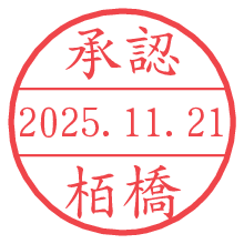 オプションの「電子透かし」をチェックし[生成]すると、見た目には分からないように、UNIXタイムスタンプを識別情報としてPNG形式の日付印に埋め込みます。 日付スタンプメーカーの使い方「部署」「名前」は最大8文字まで入力が可能です。「スタンプの色」を選択し、[生成]ボタン押下で印影画像が更新され、背景を透明に設定したPNG形式とPDF形式の印影画像がリンクからダウンロードできます。 オプションの「電子透かし」は、その性格上日付印ととても相性の良い付加サービスです。 別ページの「タイムスタンプと電子透かし」でも詳しく解説しますが、このオプションを追加することで、日付印が生成された日時に確かにその印が存在していることが証明されます。 ![]() 栢橋さんの電子印鑑が作れます。社内でのデータ書類閲覧確認用など、認印的な使い方のできる電子印鑑が作れます。 ![]() 古代文字で落款印が作れます。「落款スタンプメーカー」で作品を引き立たせる落款印が作れます。
