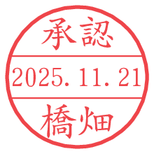 オプションの「電子透かし」をチェックし[生成]すると、見た目には分からないように、UNIXタイムスタンプを識別情報としてPNG形式の日付印に埋め込みます。 日付スタンプメーカーの使い方「部署」「名前」は最大8文字まで入力が可能です。「スタンプの色」を選択し、[生成]ボタン押下で印影画像が更新され、背景を透明に設定したPNG形式とPDF形式の印影画像がリンクからダウンロードできます。 オプションの「電子透かし」は、その性格上日付印ととても相性の良い付加サービスです。 別ページの「タイムスタンプと電子透かし」でも詳しく解説しますが、このオプションを追加することで、日付印が生成された日時に確かにその印が存在していることが証明されます。 ![]() 橋畑さんの電子印鑑が作れます。社内でのデータ書類閲覧確認用など、認印的な使い方のできる電子印鑑が作れます。 ![]() 古代文字で落款印が作れます。「落款スタンプメーカー」で作品を引き立たせる落款印が作れます。