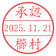 オプションの「電子透かし」をチェックし[生成]すると、見た目には分からないように、UNIXタイムスタンプを識別情報としてPNG形式の日付印に埋め込みます。 日付スタンプメーカーの使い方「部署」「名前」は最大8文字まで入力が可能です。「スタンプの色」を選択し、[生成]ボタン押下で印影画像が更新され、背景を透明に設定したPNG形式とPDF形式の印影画像がリンクからダウンロードできます。 オプションの「電子透かし」は、その性格上日付印ととても相性の良い付加サービスです。 別ページの「タイムスタンプと電子透かし」でも詳しく解説しますが、このオプションを追加することで、日付印が生成された日時に確かにその印が存在していることが証明されます。 ![]() 櫛村さんの電子印鑑が作れます。社内でのデータ書類閲覧確認用など、認印的な使い方のできる電子印鑑が作れます。 ![]() 古代文字で落款印が作れます。「落款スタンプメーカー」で作品を引き立たせる落款印が作れます。
