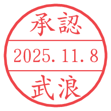 オプションの「電子透かし」をチェックし[生成]すると、見た目には分からないように、UNIXタイムスタンプを識別情報としてPNG形式の日付印に埋め込みます。 日付スタンプメーカーの使い方「部署」「名前」は最大8文字まで入力が可能です。「スタンプの色」を選択し、[生成]ボタン押下で印影画像が更新され、背景を透明に設定したPNG形式とPDF形式の印影画像がリンクからダウンロードできます。 オプションの「電子透かし」は、その性格上日付印ととても相性の良い付加サービスです。 別ページの「タイムスタンプと電子透かし」でも詳しく解説しますが、このオプションを追加することで、日付印が生成された日時に確かにその印が存在していることが証明されます。 ![]() 武浪さんの電子印鑑が作れます。社内でのデータ書類閲覧確認用など、認印的な使い方のできる電子印鑑が作れます。 ![]() 古代文字で落款印が作れます。「落款スタンプメーカー」で作品を引き立たせる落款印が作れます。