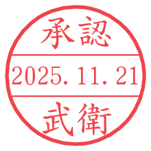 オプションの「電子透かし」をチェックし[生成]すると、見た目には分からないように、UNIXタイムスタンプを識別情報としてPNG形式の日付印に埋め込みます。 日付スタンプメーカーの使い方「部署」「名前」は最大8文字まで入力が可能です。「スタンプの色」を選択し、[生成]ボタン押下で印影画像が更新され、背景を透明に設定したPNG形式とPDF形式の印影画像がリンクからダウンロードできます。 オプションの「電子透かし」は、その性格上日付印ととても相性の良い付加サービスです。 別ページの「タイムスタンプと電子透かし」でも詳しく解説しますが、このオプションを追加することで、日付印が生成された日時に確かにその印が存在していることが証明されます。 ![]() 武衛さんの電子印鑑が作れます。社内でのデータ書類閲覧確認用など、認印的な使い方のできる電子印鑑が作れます。 ![]() 古代文字で落款印が作れます。「落款スタンプメーカー」で作品を引き立たせる落款印が作れます。